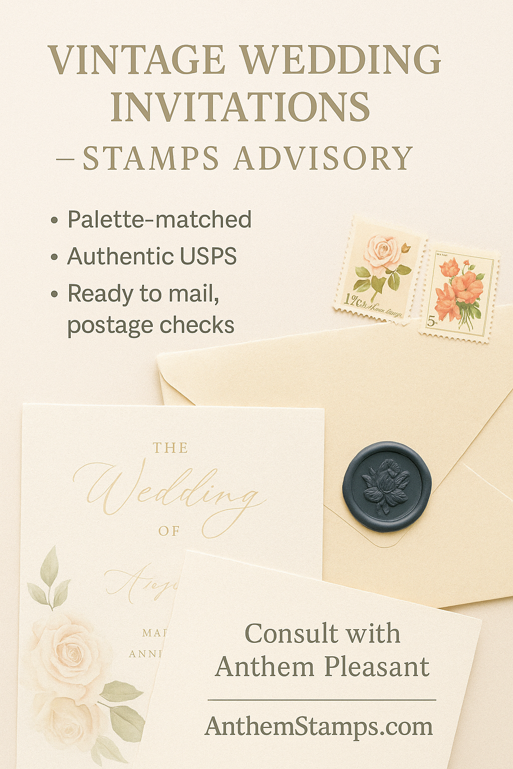 Anthem Stamps (AnthemStamps.com) is a research-driven philatelic dealership offering investment advisory, consignments, estate solutions, and design-forward postage curation for weddings, holidays, promotions, and invitations.